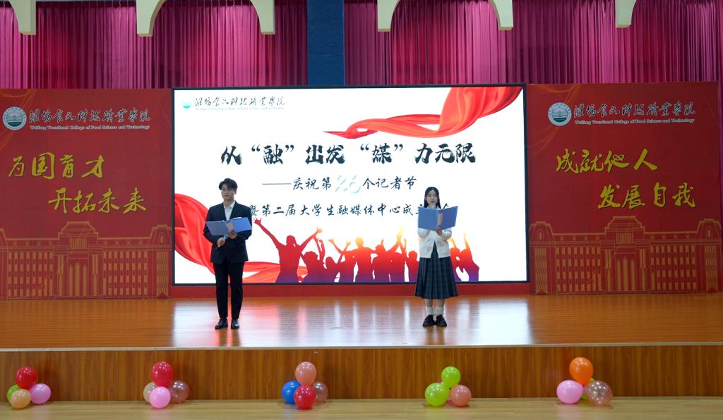 11月7日,在第26个中国记者节来临之际,我校以“从‘融’出发‘媒’力无限”为主题,在学术报告厅隆重举行庆祝活动暨第二届大学生融媒体中心成立仪式。学校常务副校长李保城,宣传统战部、学生工作部等相关部门负责人,百余名师生代表及融媒体中心成员齐聚一堂,共同见证校园媒体发展的崭新篇章。