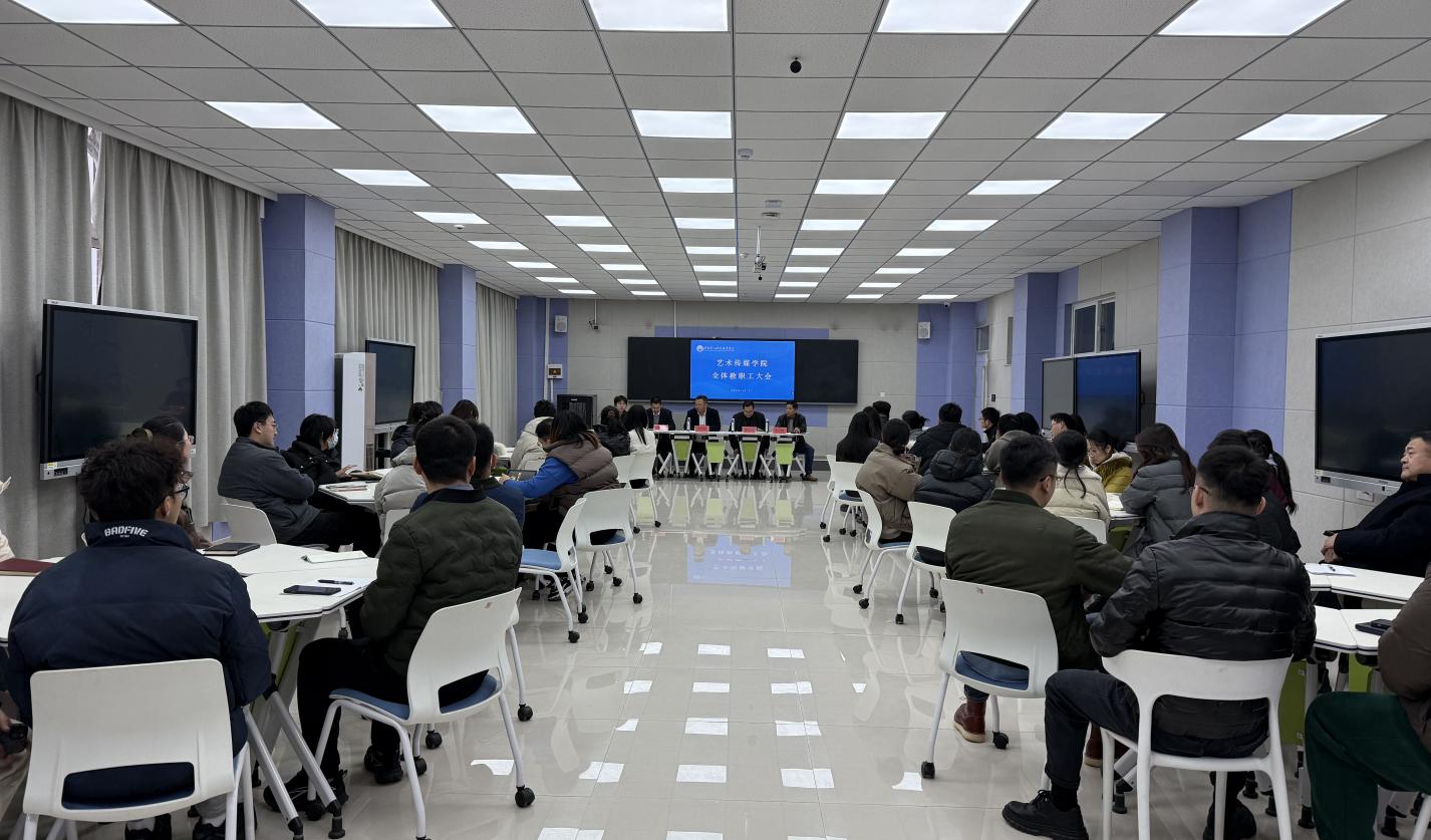 12月22日,艺术传媒学院召开全体教职工大会,学校党委书记肖明胜、党委副书记郇延民出席会议,艺术传媒学院全体教职工参加会议。