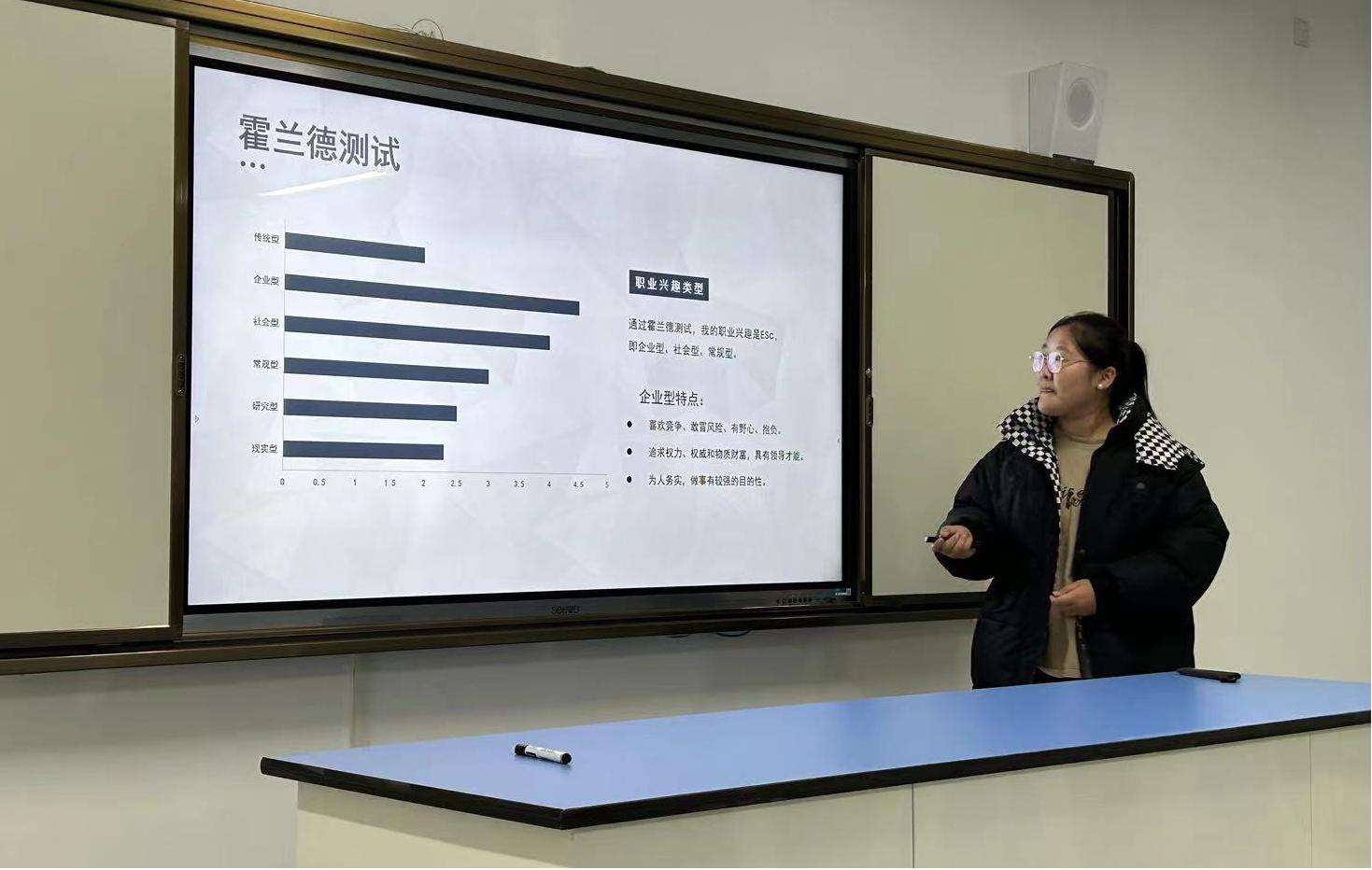 比赛现场,选手们从自我评估与分析、专业分析、就业方向及就业前景展望、职业目标确定及行动规划、评估与调整等方面,全面展示自己的职业规划。