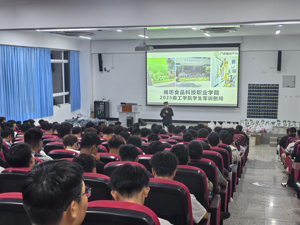 9月18日晚,歌尔匠造班代表一行4人专程来到潍坊食品科技职业学院工学院军训班级,为参训新生送上定制慰问礼包与暖心关怀,以实际行动践行企业社会责任,助力青年学子成长成才。