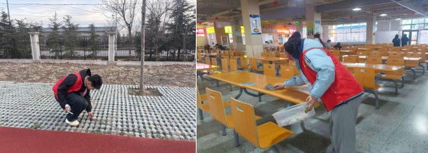 活动开始前,团委负责人对本次志愿服务进行了统一安排,工作人员详细讲解了活动流程、任务分工及安全注意事项,将志愿者们划分为环境清扫组、绿化维护组、文明宣传组等多个小队,明确责任区域,确保活动高效有序开展,大家精神饱满、热情高涨,提前领取清洁工具,认真聆听要求,为后续服务做好充分准备。活动现场,同学们不畏辛劳,手持扫帚、夹子、垃圾袋等工具,对教学楼周边、操场、绿化带、道路两侧及卫生死角进行全面清理。面对绿化带中难以清理的杂物,志愿者们耐心细致地徒手清理,用汗水换来校园环境的洁净清爽。