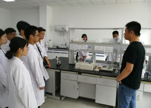 在企业生产负责人陪同下,师生们先后参观了海奥斯发酵生产车间和质检室,通过技术人员的详尽介绍,同学们了解到主要产品的生产流程和关键技术要点。平时课堂上难以理解掌握的生产原理、检测流程,一些只出现在图片和视频里的检测设备、操作方法都直观地呈现在同学眼前,理论和实践相结合,书本知识和生产实际一一验证,同学们看到眼里记在了心中。