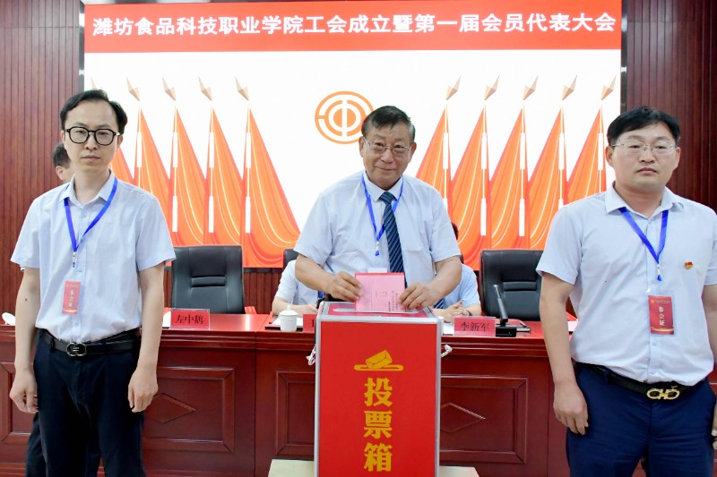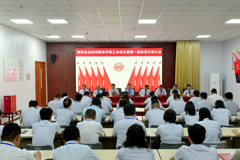 会上,李新军书记和王鲁刚董事长为潍坊食品科技职业学院工会委员会揭牌。