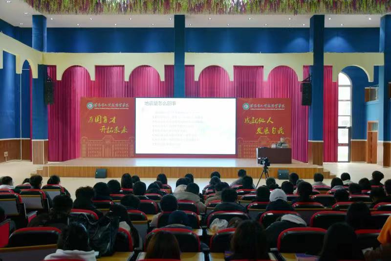 裴华文从地震板块构造、地震形成的原因、地震诱发因素、应急逃生技能及自救互救等几个大的方面做了详细讲解。郑迪从火灾的危险性、防火灭火常识、火场逃生技巧等方面向师生进行形象、生动地讲解,告诫全体师生消防安全无小事,增强消防意识,远离火灾。