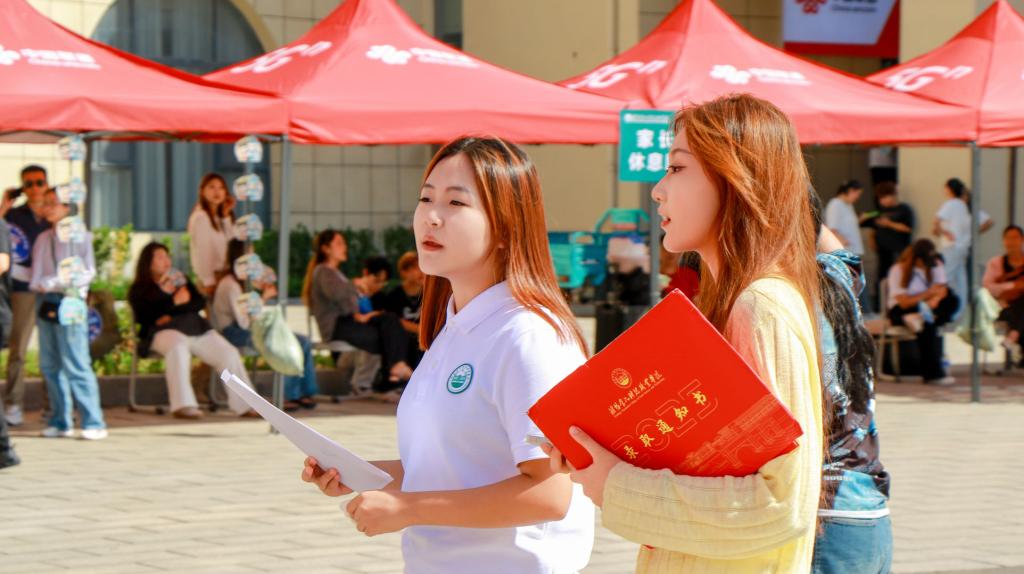 “太贴心了!刚下车就收到了校园地图。”新生严雨鑫笑着说。今年学校招募了145名“老生带新人”志愿者,他们身着白色文化衫,化身“移动服务站”,从校门口的行李搬运,到报到流程的全程指引,再到校园政策的细致解答,提供“一站式”服务。