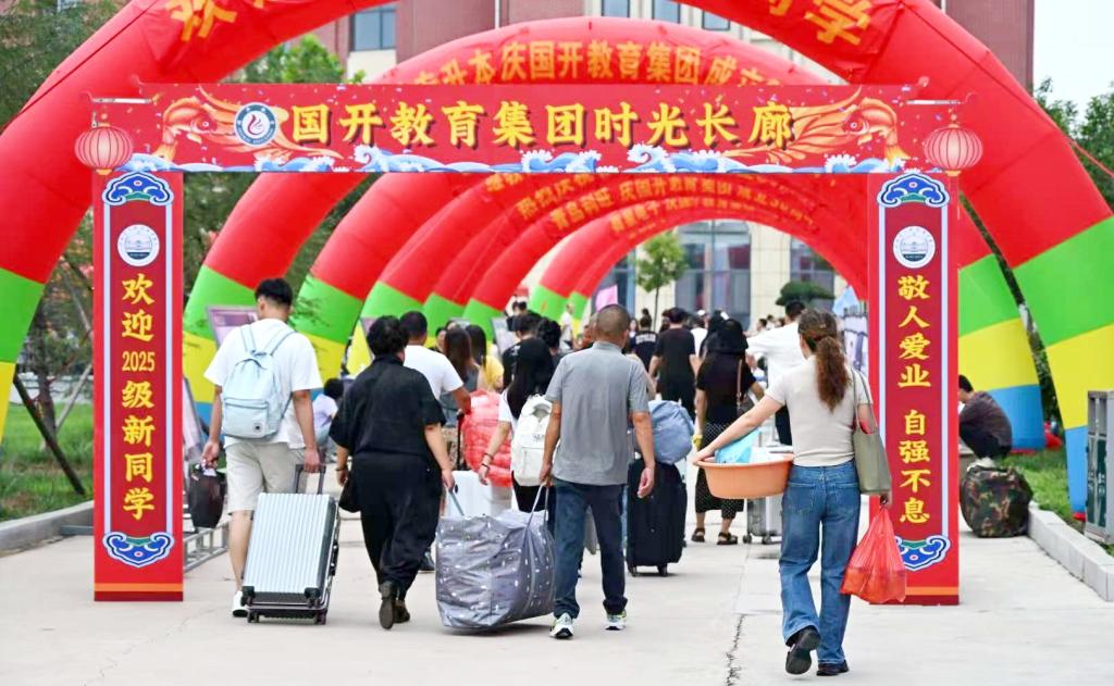 迎新现场不仅高效便捷,更处处充满人文关怀。报到入口处,由八个红色拱门组成的“国开教育集团30年时光长廊”格外吸睛。长廊两侧,数十块展板与喷绘串联成“时光画卷”,老照片里的校园旧貌、奖牌影像中的荣誉时刻、现代校园的全景图相互交织,生动展现了集团30载深耕教育的历程。新生与家长漫步其间,指尖轻轻拂过展板,在“栉风沐雨办教育”的叙事中,读懂“以教育赋能成长”的核心理念,也为这场“初遇”增添了厚重的历史底蕴。