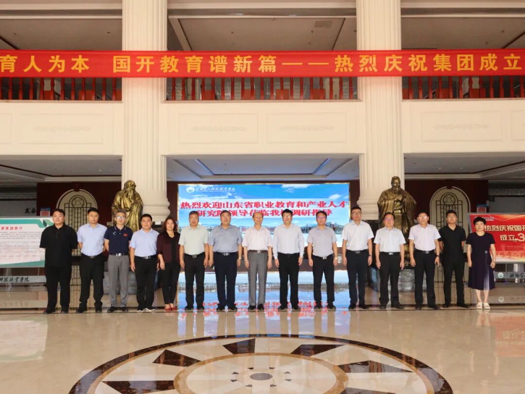 9月10日,山东省高等教育发展研究中心主任、山东省教育厅原一级巡视员、副厅长宋承祥,山东省职业教育和产业人才研究院院长刘昕一行11位专家莅临我校,就新一代信息技术产教融合实践中心建设情况进行专题调研。学校党委书记肖明胜,国开教育集团董事长、学校董事长王鲁刚,党委副书记、校长亓俊忠等校领导陪同调研并参加座谈。