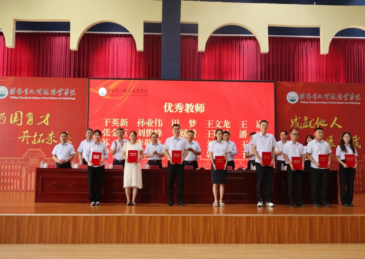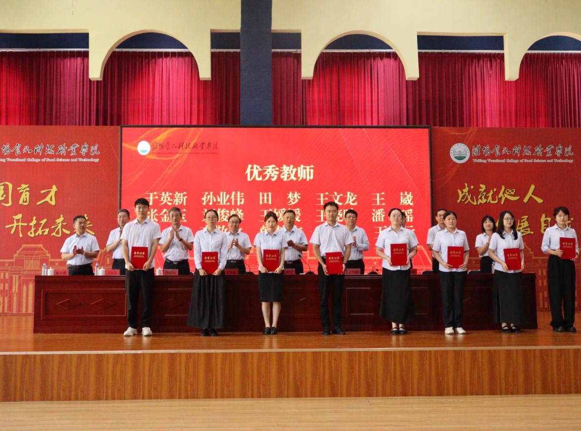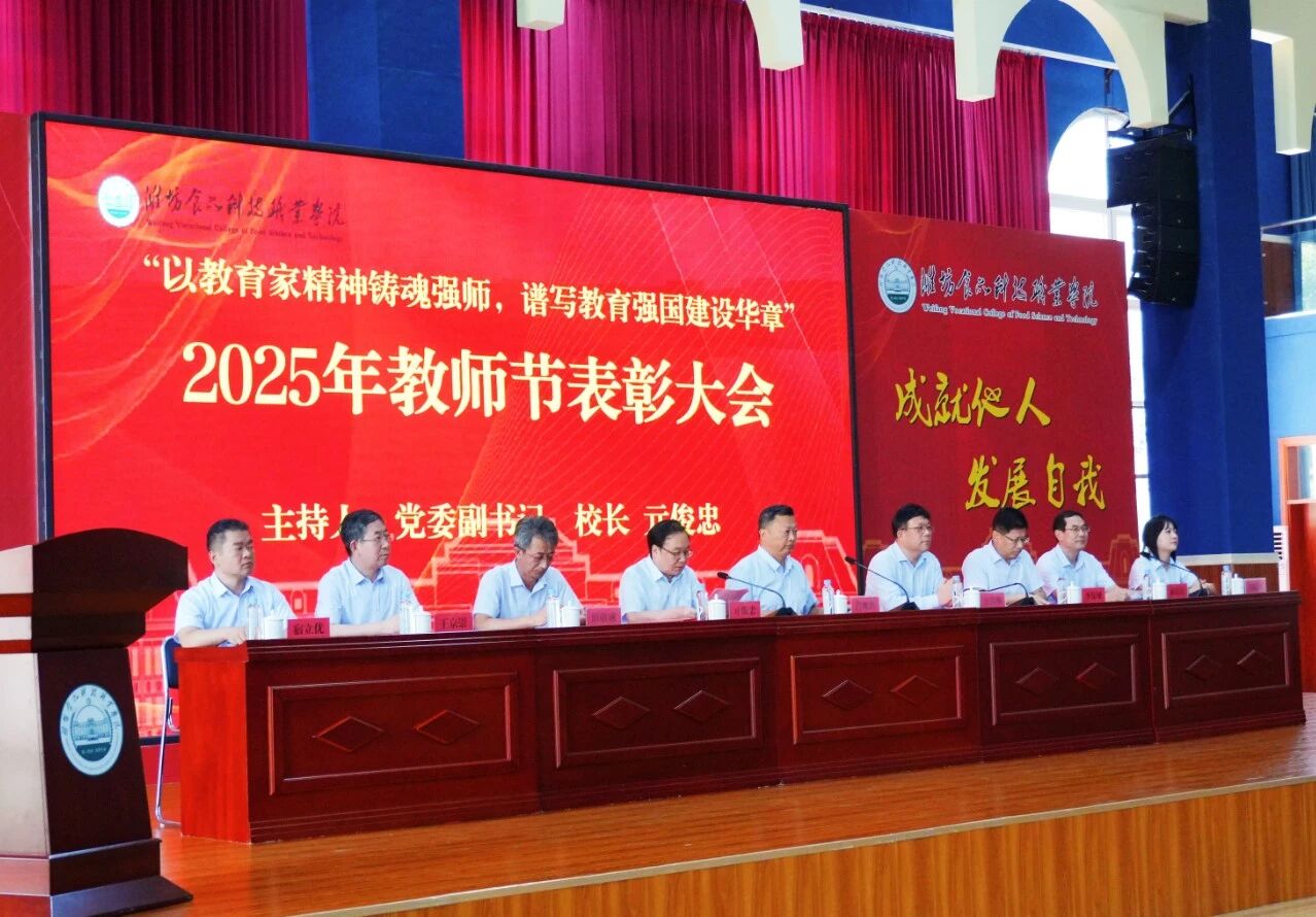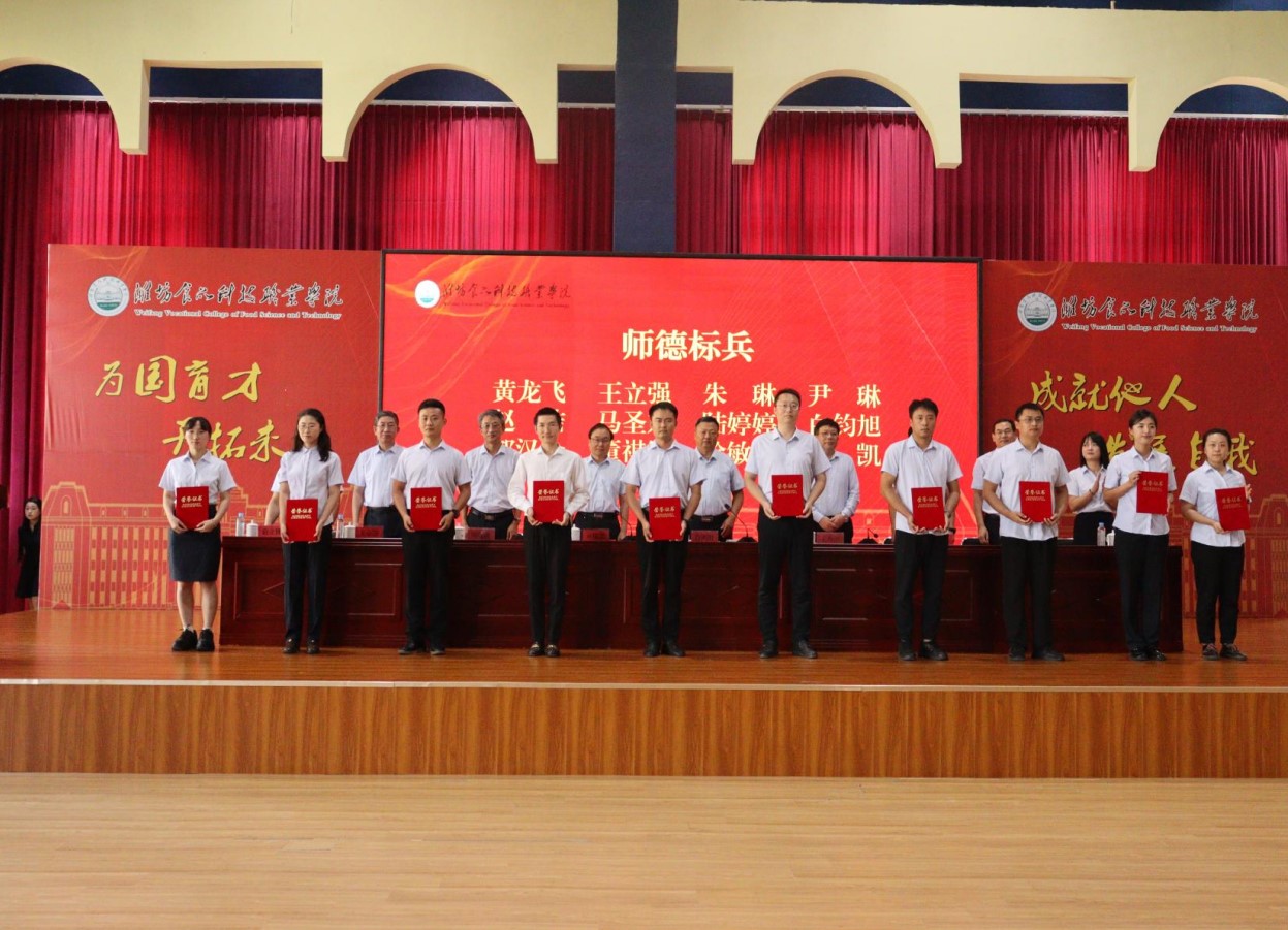 大会在国歌声中拉开帷幕。肖明胜在讲话中肯定学校过去一年在教育教学、科研创新、人才培养等方面的成绩,并感谢全体教职工的付出。肖明胜要求,全体教师要认真学习领会教育家精神,牢记为党育人、为国育才的初心使命,以教育家为榜样,努力培养德智体美劳全面发展的社会主义建设者和接班人;要提升专业素养和实践教学能力,积极参与企业实践锻炼,不断更新知识结构,努力成为既懂理论又能实践的“双师型”教师,为学校内涵建设和高质量发展贡献力量;要关心每位学生成长成才,因材施教激发学生的学习兴趣与潜能,帮助学生树立信心、健康成长;要深化融合,立足食品科技专业特色,把产教融合、校企合作的理念融入教学科研全过程,实现教学过程与生产过程的对接,为区域经济与食品产业升级培养更多“大国工匠”。