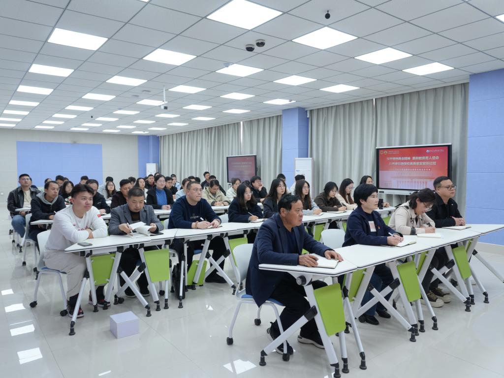 为深入学习贯彻2026年全国两会精神,切实把思想和行动统一到党中央决策部署上来,推动两会精神在校园落地生根,4月2日,学校党委书记肖明胜深入智能制造学院与人工智能学院,为全体党员及骨干教师讲授题为《深学细悟两会精神 勇担教育育人使命 ——以党建引领学校高质量发展新征程》的专题党课。此次专题宣讲紧密结合学校办学实际与职业教育发展大势,旨在凝聚师生奋进力量,助力高素质技能人才培养与科技创新工作提质增效。